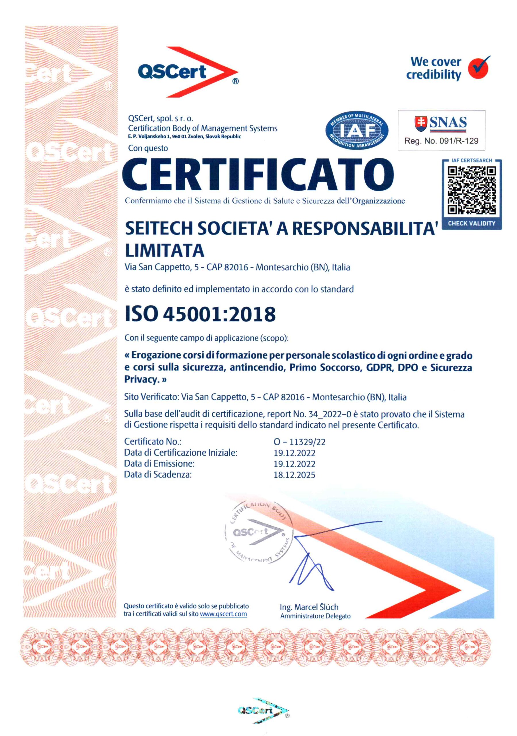 Seitech ha conseguito la certificazione ISO 45001:2018 è uno standard internazionale per i sistemi di gestione della salute e sicurezza sul lavoro (S&SL). Ecco alcuni punti chiave: